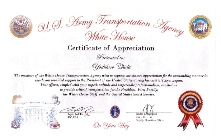 アメリカ大統領の来日時、国賓・要人の送迎をいたしました。