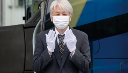 乗務中は必ずマスクと専用手袋の着用をいたします。