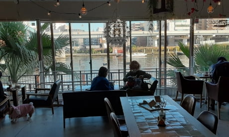 クルーズ後はリバーサイドを歩きながら、浅草の隠れ家カフェ「DOG DEPTカフェ浅草 隅田川テラス店」へ。貸切なので、気兼ねなくランチをどうぞ。食後は、しばしフリータイム。世界に誇るニホンの観光地・浅草を愛犬と散歩、思い出の一日がより鮮やかになります。