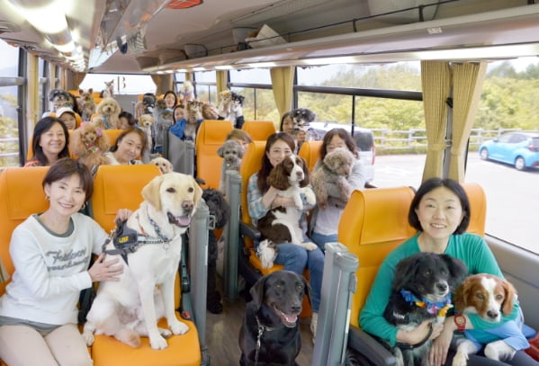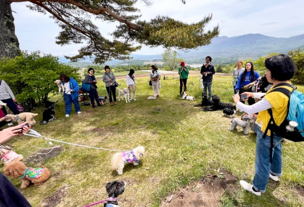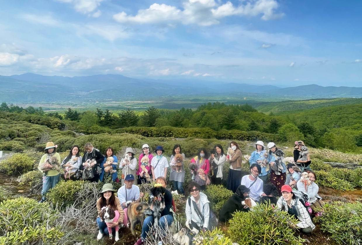 日本一のキャベツ生産地として、また愛妻家の聖地として知られる群馬県・嬬恋村を舞台にした1泊2日のツアーに愛犬家18名、わんちゃん23頭が専用バス1台に乗車して参加。天空の花畑「シャクナゲ園」の散策、愛妻の丘での「犬愛を叫ぶ」イベントなど、参加された皆様が満足した2日間になりました。